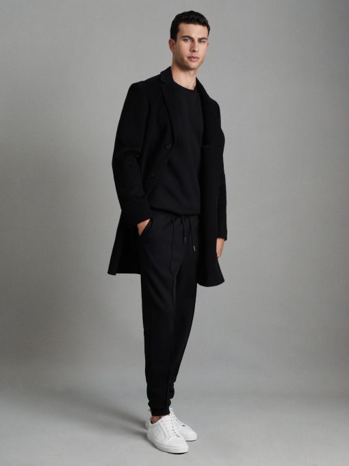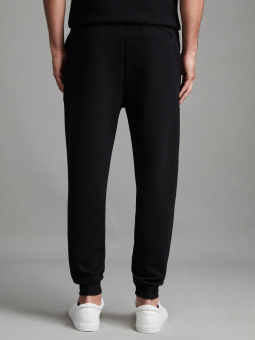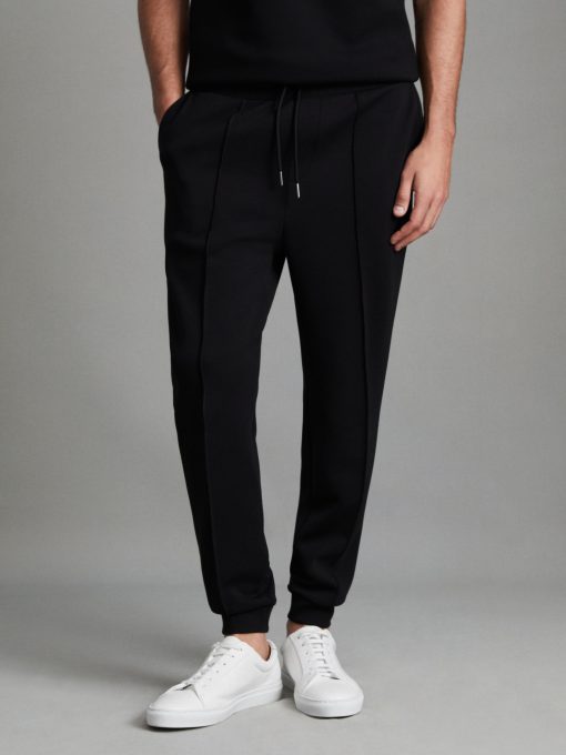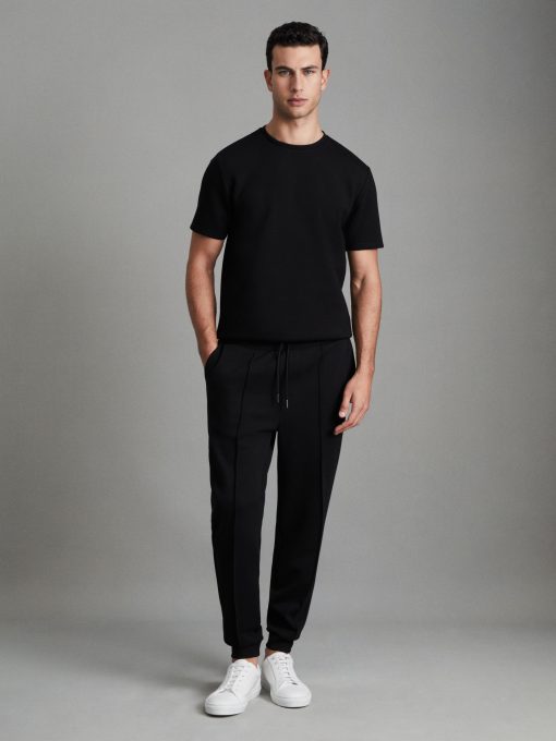 Elevate your casual edits with the Premier joggers in black. They’re crafted from a soft jersey with hints of stretch for comfort in your everyday. Pinched front seams and cuffed ankles complete the look, whilst a drawstring waistband tailors the fit. Keep your look effortless by teaming them with the coordinating hoodie and Reiss trainers. Jersey fabrication Pinched front seams Drawstring waistband Side-slip pockets Jetted pocket to reverse Cuffed ankles This garment is a part of the Reiss Phantom range, a sleek collection of all-black garments designed to celebrate the unwavering excellence of this classic shade. The model is wearing a size M. Measurements of model: Height 6ft 2.5″ / 189cm.