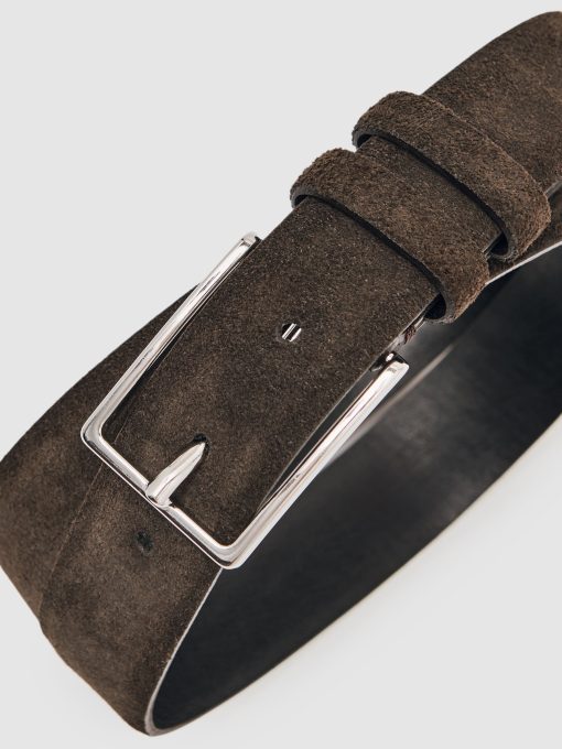 Reiss Men’s Suede Belt In Chocolate | Chocolate