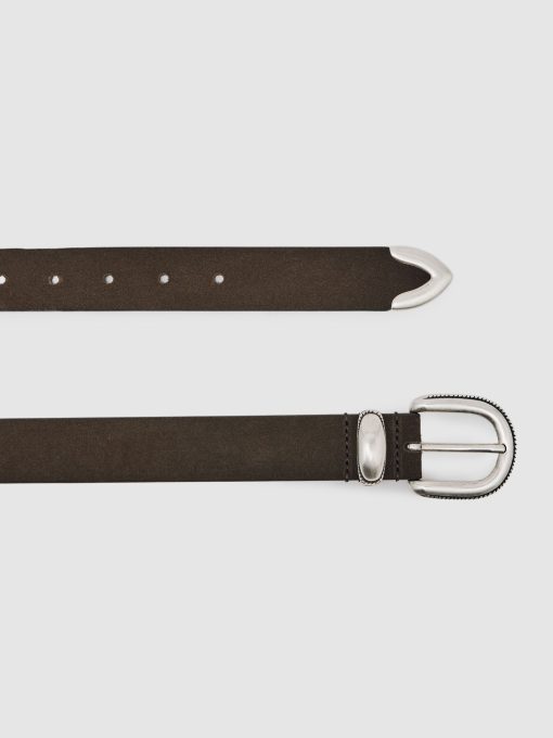 Reiss Men’s Suede Western-style Belt In Dark Brown | Dark Brown