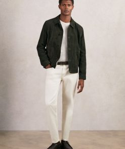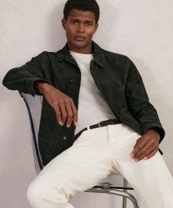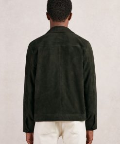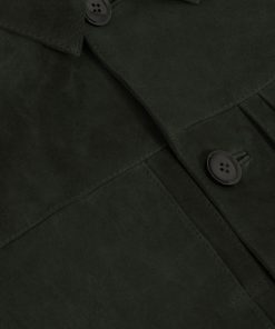 The Devonshire jacket, crafted from ultra-soft suede, offers an elevated take on the classic worker silhouette. Horn-effect buttons fasten the cuffs and front placket, while two front patch pockets nod to its utilitarian roots. 100% suede Front patch pockets Button cuffs Front buttons The model is wearing a size M Measurements of model: Height 6ft 2.5 / 189cm Regular centre back neck to hem 26.5″ / 67cm.