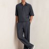 Knitted with fine ribs, the Arthur trousers combine structure with stretch for an elevated take on casualwear. Tailored to a tapered leg, they sit comfortably at the waist with an elasticated band and secure double hook-and-bar fastening. Fine rib knit: Tapered Elasticated waistband. Side slip pockets. Double hook-and-bar with zip. Regular inside leg length 28.5″ / 73cm.