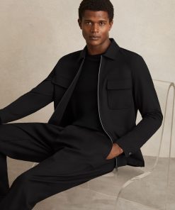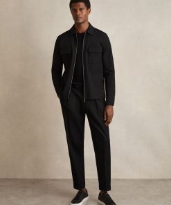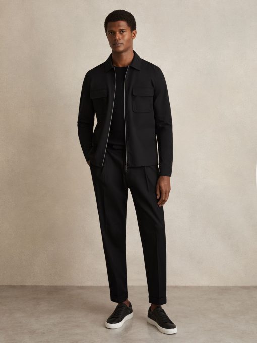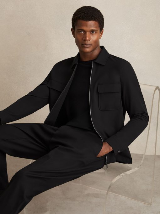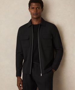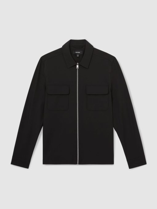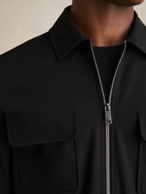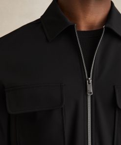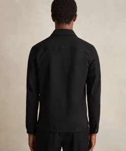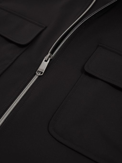 Crafted from technical stretch fabric, the Black Ascend overshirt blends functionality with a clean, modern design. Twin flap pockets and press-stud cuffs add utility, while the full zip-through front offers versatility. Technical stretch fabric Classic collar Flap patch pockets Press-stud cuffs Front zip
