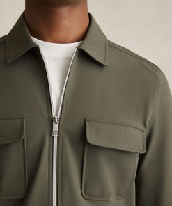Crafted from technical stretch fabric, the Green Ascend overshirt blends functionality with a clean, modern design. Twin flap pockets and press-stud cuffs add utility, while the full zip-through front offers versatility. Technical stretch fabric Classic collar Flap patch pockets Press-stud cuffs Front zip