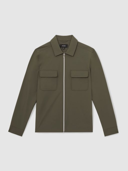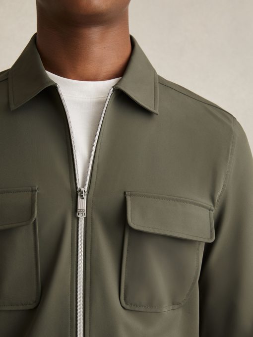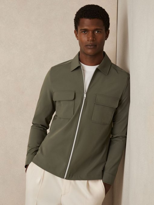 Crafted from technical stretch fabric, the Green Ascend overshirt blends functionality with a clean, modern design. Twin flap pockets and press-stud cuffs add utility, while the full zip-through front offers versatility. Technical stretch fabric Classic collar Flap patch pockets Press-stud cuffs Front zip
