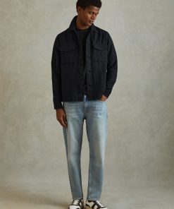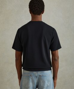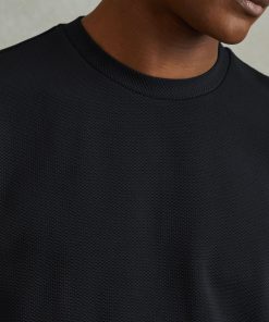 The navy Wick T-shirt has a textured, stretch-enhanced fabric, lending interest and comfort to this classic crew neck shape. Textured Crew neckline The model is wearing a size M. Measurements of model: Height 6ft 2.5″ / 189cm.