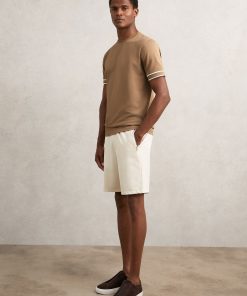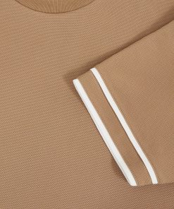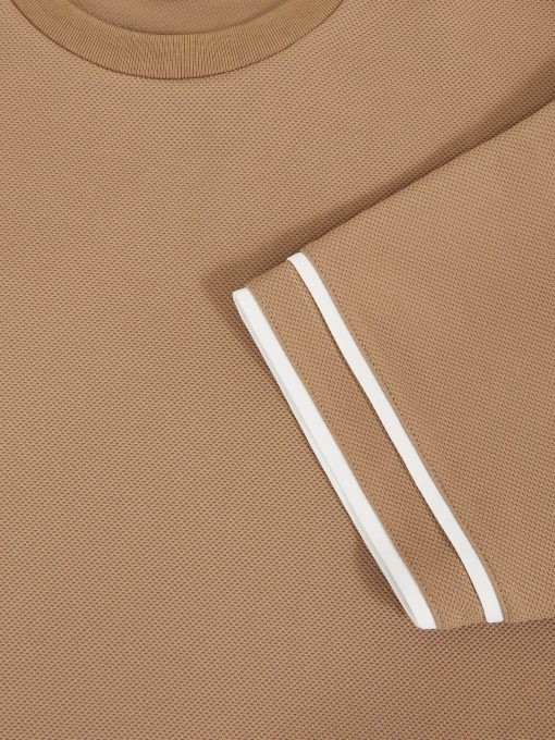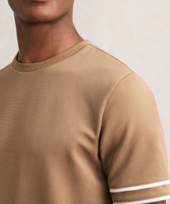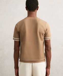 The Camel Brown Oscar T-shirt is cut from textured fabric for a tactile feel, elevated by contrast tipping at the sleeves. A classic crew neckline completes the design. Textured fabric Tipped short sleeves Crew neckline The model is wearing a size M. Measurements of model: Height 6ft 2.5″ / 189cm.