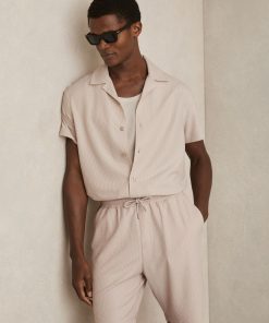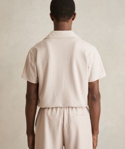 The Champagne Warwick shirt is crafted in a classic shape, from a soft knit with a subtle texture that creates a striped effect. A hint of stretch in its fabric offers ease of movement and a fluid feel. Textured knit Cuban collar Front buttons The model is wearing a size M. Measurements of model: Height 6ft 2.5″ / 189cm.