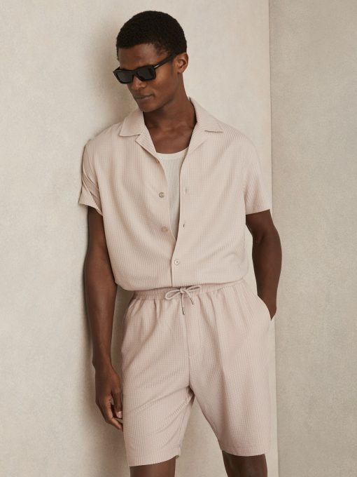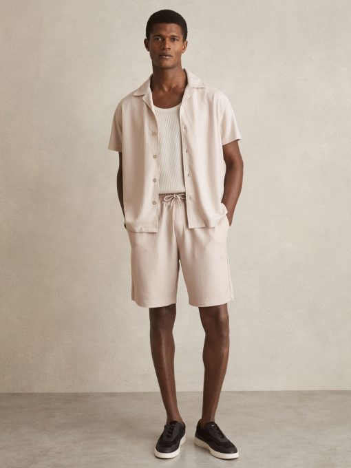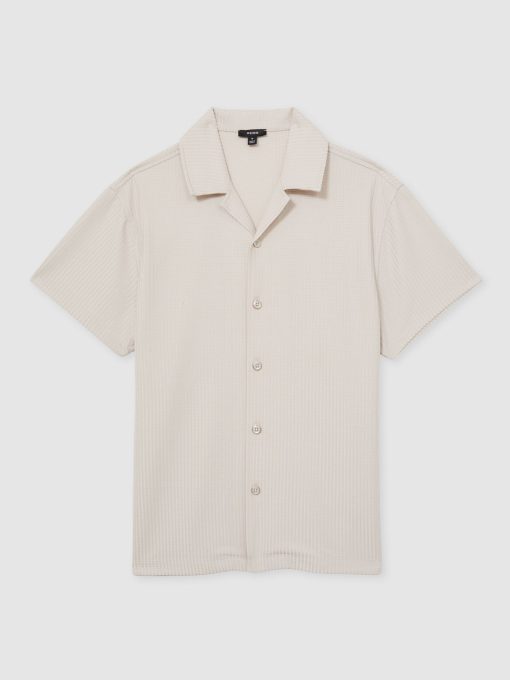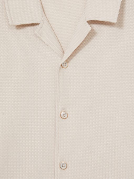 The Champagne Warwick shirt is crafted in a classic shape, from a soft knit with a subtle texture that creates a striped effect. A hint of stretch in its fabric offers ease of movement and a fluid feel. Textured knit Cuban collar Front buttons The model is wearing a size M. Measurements of model: Height 6ft 2.5″ / 189cm.