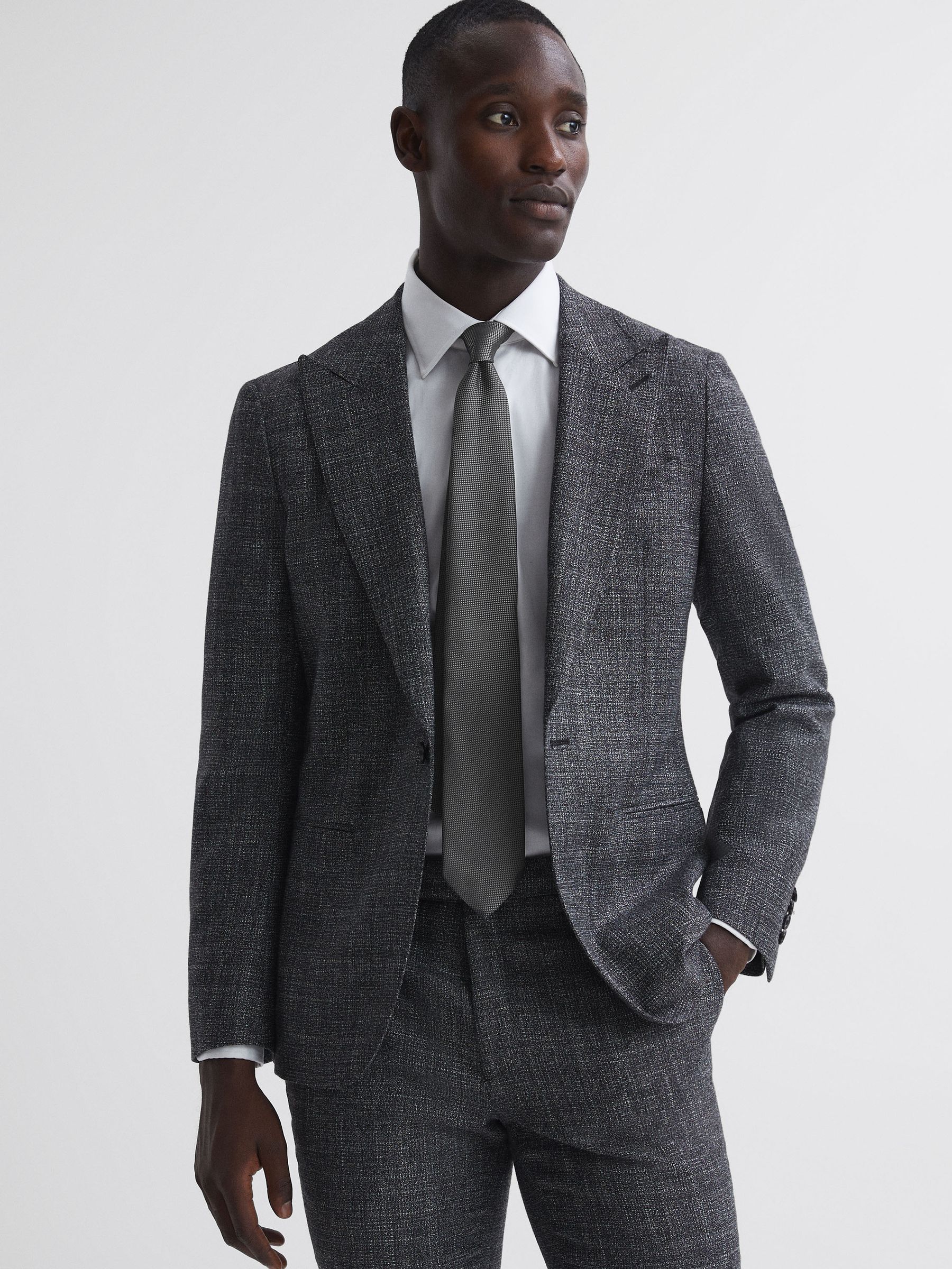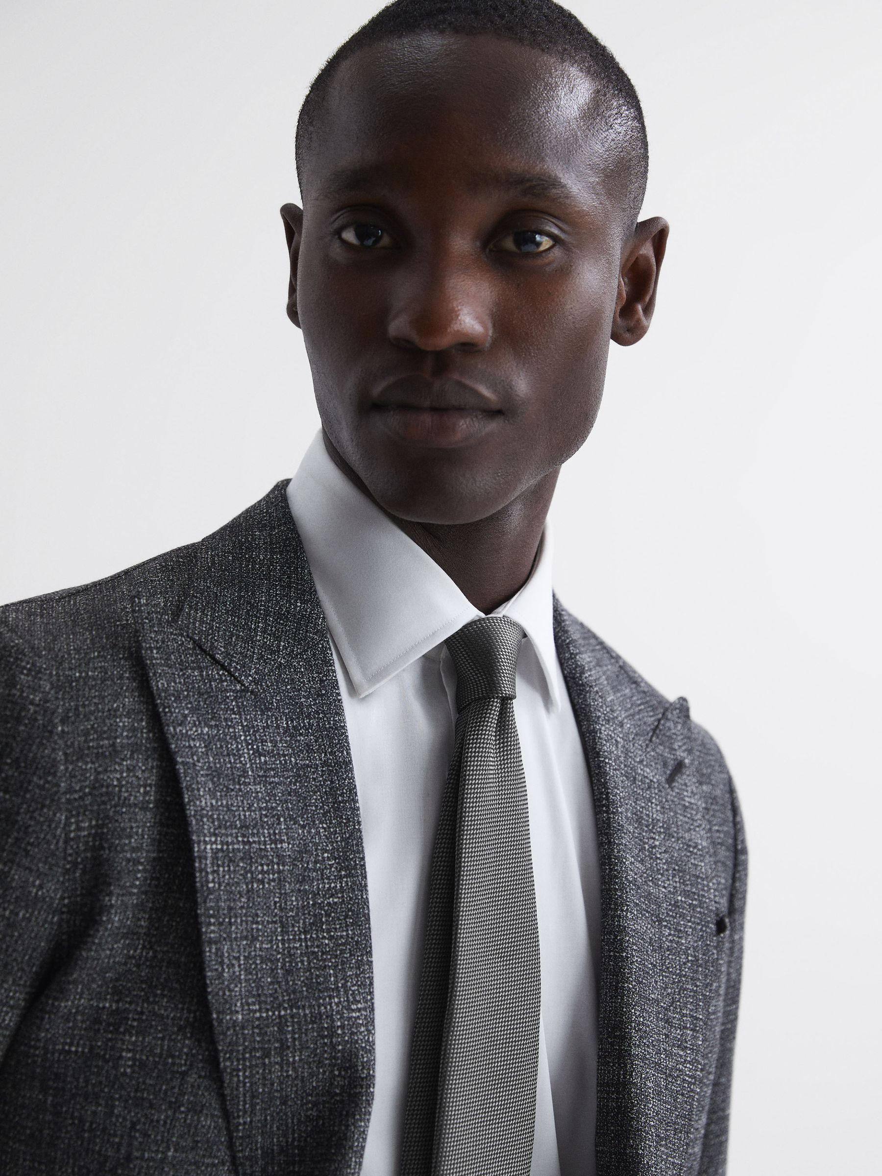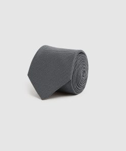 Reiss Men’s Textured Silk Blend Tie In Charcoal | Charcoal