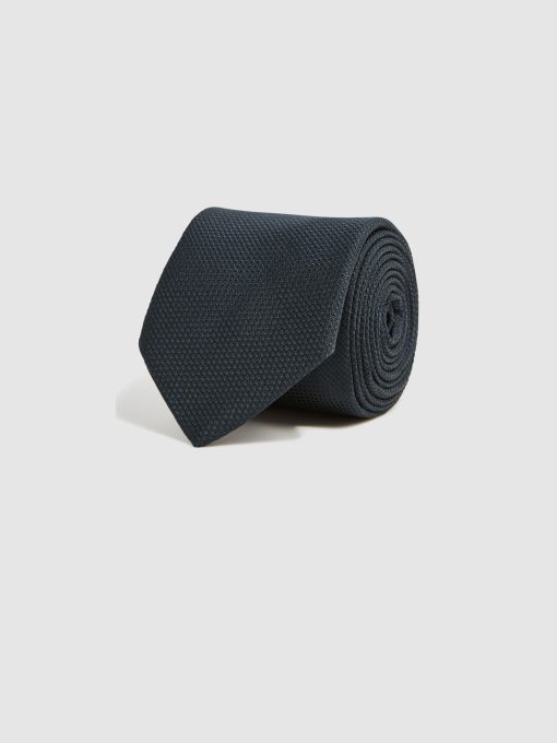 Reiss Men’s Textured Silk Blend Tie In Navy | Navy