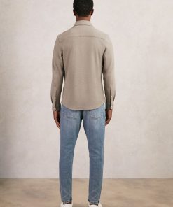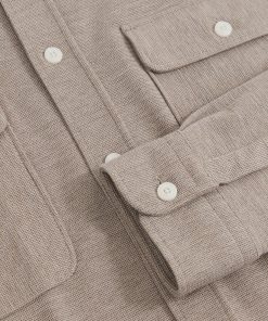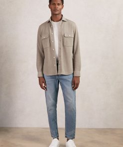 A subtle texture lends the Oatmeal Brown Melange the overshirt a tactile finish, while a classic collar adds refined structure. Buttoned flap pockets introduce a subtle nod to utility. Cotton blend Textured finish Button-flap patch pockets Button cuffs Front button placket The model is wearing a size M. Measurements of model: Height 6ft 2.5″ / 189cm.