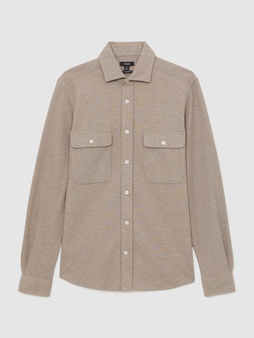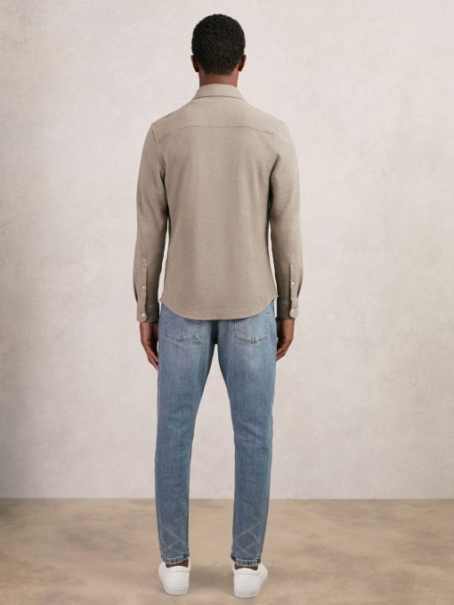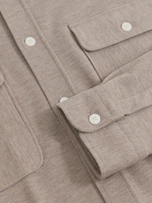A subtle texture lends the Oatmeal Brown Melange the overshirt a tactile finish, while a classic collar adds refined structure. Buttoned flap pockets introduce a subtle nod to utility. Cotton blend Textured finish Button-flap patch pockets Button cuffs Front button placket The model is wearing a size M. Measurements of model: Height 6ft 2.5″ / 189cm.