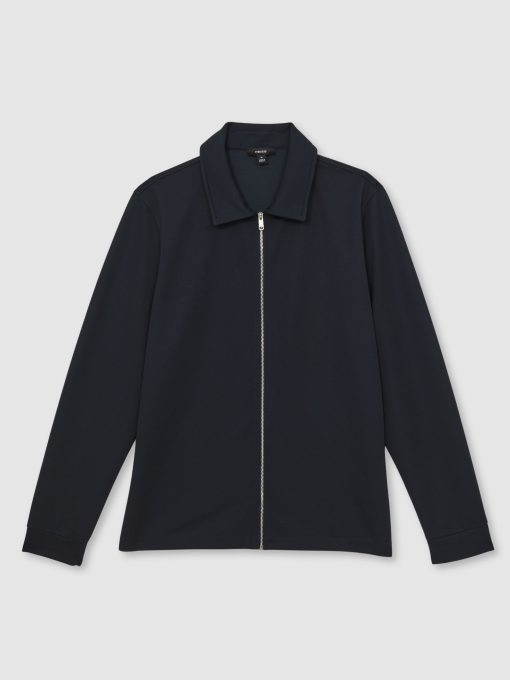 The Bailey overshirt is elevated by its textured finish, lending subtle depth to the minimalist silhouette. Cut with a classic collar and finished with a clean front zip, it layers effortlessly over everyday looks. Textured finish. Classic collar. Front zip.