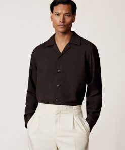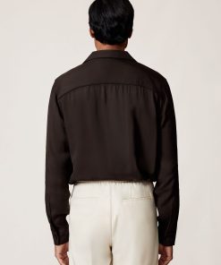 The Space shirt is crafted from fluid twill in a relaxed silhouette. Contrast piping across the shoulders and yoke adds subtle interest, while the Cuban collar and classic French placket offer a modern finish.TwillRelaxed fitContrast pipingCuban collarFrench button placket