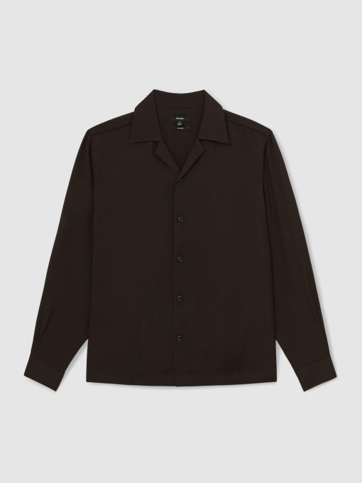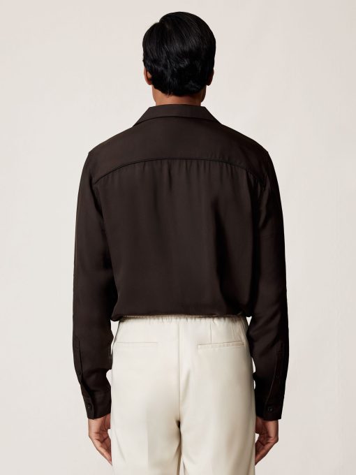 The Space shirt is crafted from fluid twill in a relaxed silhouette. Contrast piping across the shoulders and yoke adds subtle interest, while the Cuban collar and classic French placket offer a modern finish.TwillRelaxed fitContrast pipingCuban collarFrench button placket