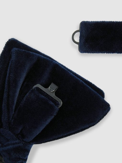 The navy Hike bow tie offers an elegant way to accessorise a formal outfit while a clip fastening at the back makes it a no-fuss accessory. Pair with a classic tuxedo, a dress shirt and leather dress shoes for a refined evening look with a touch of tactile style. Clip fastening Double layered bow Width 13.5cm