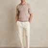 Reiss Men’s Merino Wool Open-collar Polo Shirt In Wicker Brown Melange | Wicker Brown Melange