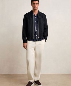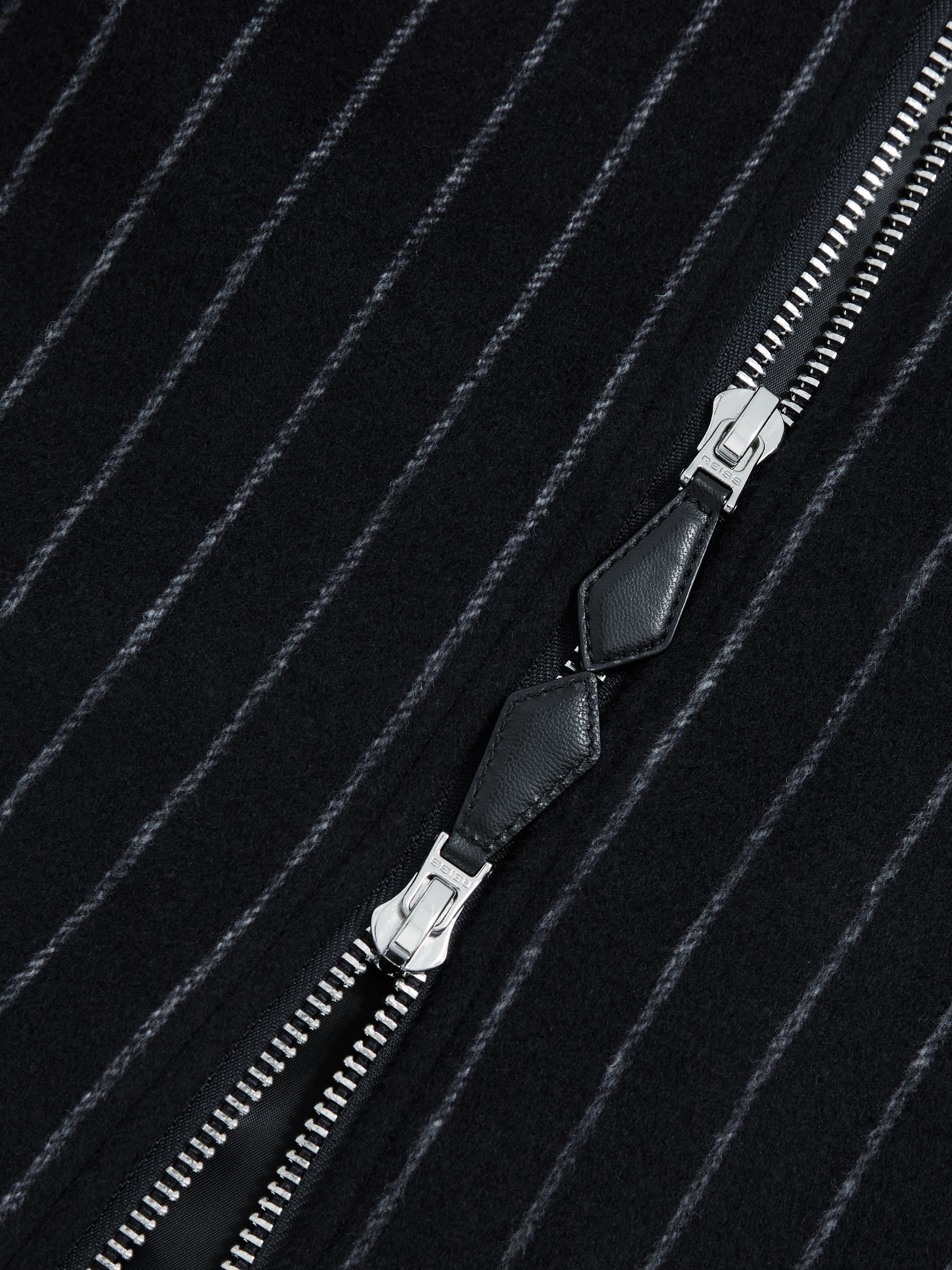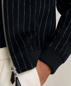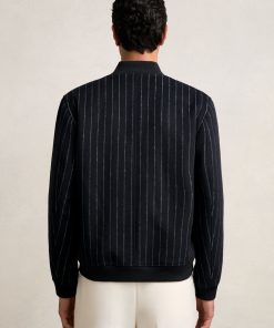 The Baddow bomber jacket is cut from a wool blend and patterned with refined chalk stripes for a tailored take on a casual silhouette. Ribbed trims and a dual front zip maintain it's sporty origins. Wool blend. Chalk stripes. Side slip pockets. Ribbed trims. Dual front zip. Regular centre back neck to hem 27″ / 68cm.