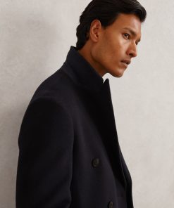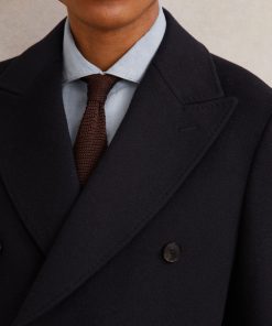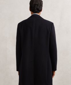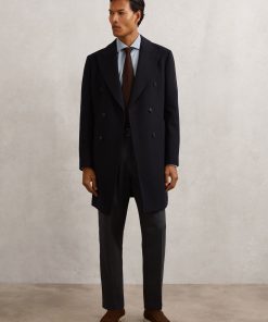 Crafted with a double-breasted front from a structured wool-blend, the Timpano overcoat presents a finely tailored look. Designed with peak lapels, welt pockets, and button fastenings. Wool blend, Double-breasted, Peak lapel, Welt pockets, Front buttons, Lined. Regular centre back neck to hem 38″ / 96cm.