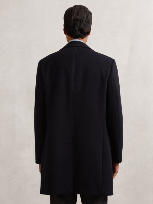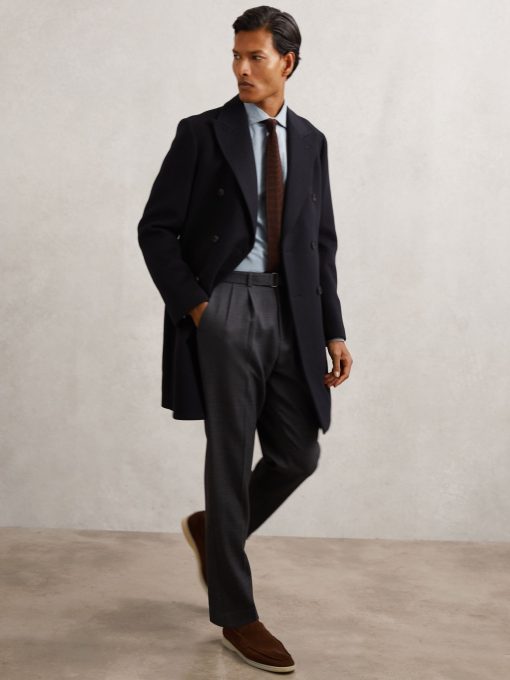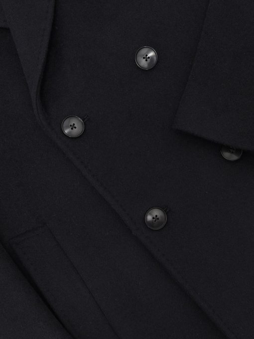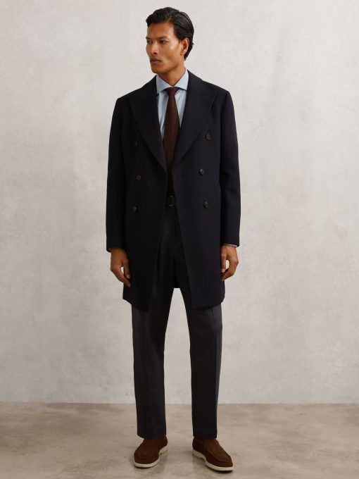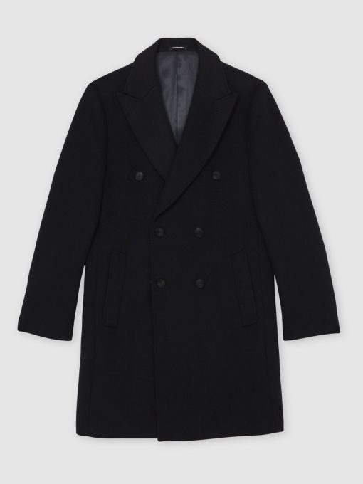 Crafted with a double-breasted front from a structured wool-blend, the Timpano overcoat presents a finely tailored look. Designed with peak lapels, welt pockets, and button fastenings. Wool blend, Double-breasted, Peak lapel, Welt pockets, Front buttons, Lined. Regular centre back neck to hem 38″ / 96cm.