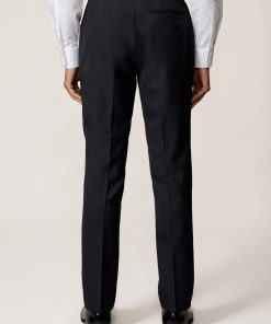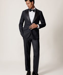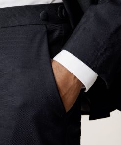 The Sinatra tuxedo trousers are crafted from a wool-blend jacquard, offering subtle texture and depth. Cut to a tailored fit, they feature button side adjusters and a hook-and-bar fastening with zip for a polished, party-ready finish. Wool blend Textured jacquard Tailored fit Button side adjusters Hook-and-bar with zip Regular inside leg length 31.5″ / 80cm.