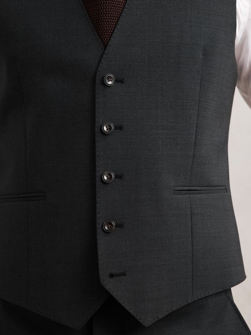 The Grey Promise waistcoat is crafted from a refined wool-blend in a plain weave, offering a sleek, slim fit. The single-breasted design is complemented by two welt pockets and an adjustable strap at the back. Wool blend Single-breasted Welt pockets Adjustable strap to reverse Front buttons The model is wearing a size 38. Measurements of model: Height 6ft 2.5″ / 189cm.
