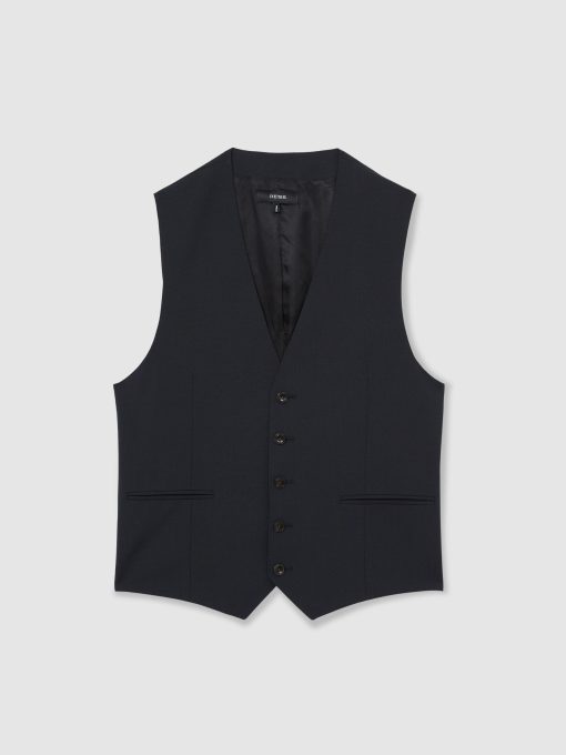 Reiss Men’s Wool-blend Slim-fit Waistcoat In Navy | Navy