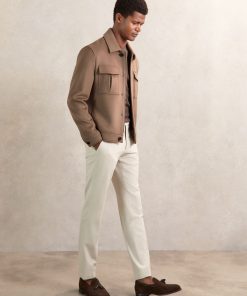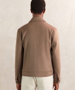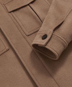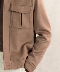 Softly tailored from a wool blend, the Dark Brown Perisil jacket blends timeless design with a refined edge. A concealed zip front and pleated flap pockets refine the silhouette with clean, minimal detailing. Wool blend Pleated flap pockets Button cuffs Front zip with button placket The model is wearing a size M. Measurements of model: Height 6ft 2.5″ / 189cm. Regular centre back neck to hem 27″ / 68cm.