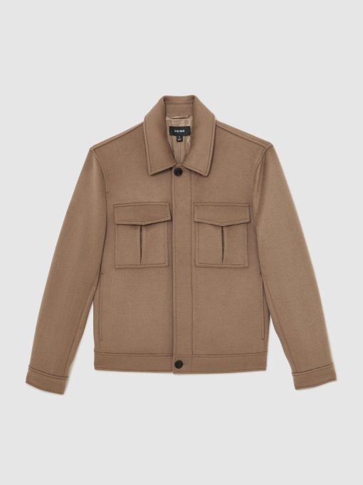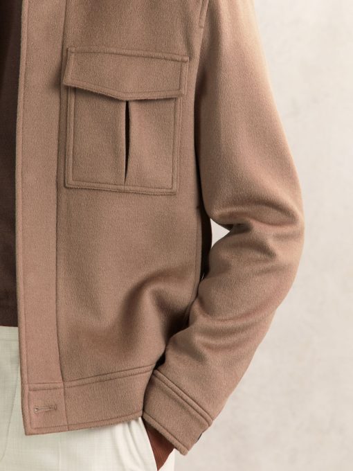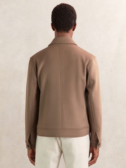 Softly tailored from a wool blend, the Dark Brown Perisil jacket blends timeless design with a refined edge. A concealed zip front and pleated flap pockets refine the silhouette with clean, minimal detailing. Wool blend Pleated flap pockets Button cuffs Front zip with button placket The model is wearing a size M. Measurements of model: Height 6ft 2.5″ / 189cm. Regular centre back neck to hem 27″ / 68cm.