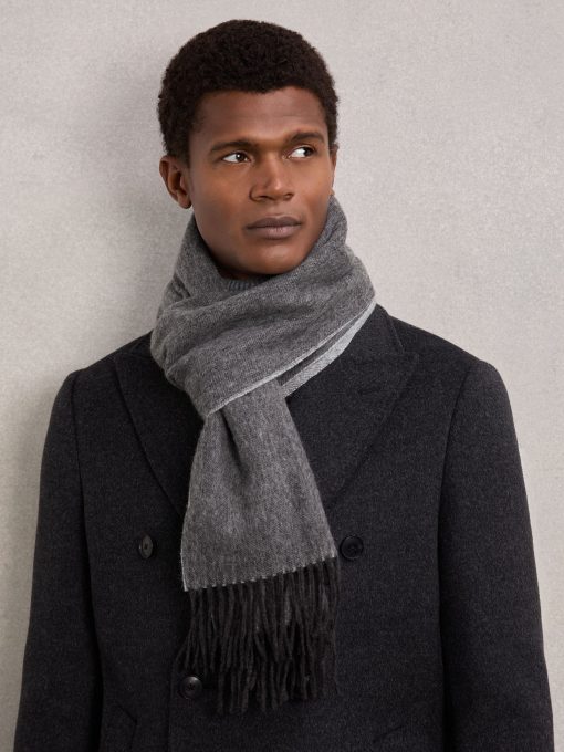 Reiss Men’s Wool-cashmere Script-logo Scarf In Mid Grey Melange/light Grey | Mid Grey Melange & Light Grey