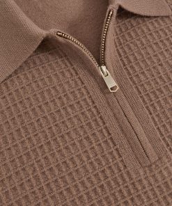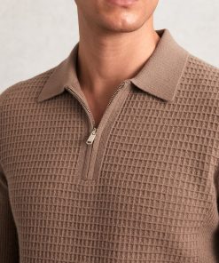 Knitted from 100% Wool, the Camel Brown Hamilton polo shirt features a textured waffle finish that adds depth to its casual shape. A half-zip neckline refines the look with a modern edge. 100% Wool Waffle knit Long sleeves Ribbed hem and cuffs Half-zip The model is wearing a size M. Measurements of model: 6ft 3″ / 190.5cm.