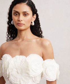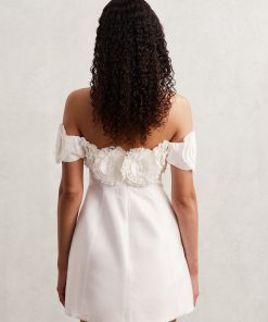 Delicate pleated rosettes along the off-shoulder neckline add a whimsical touch to Acler’s Trusley dress. Crafted from heavy satin for a structured fit, it finishes in a mini-length hem with a subtle tulip shape for a sculptural, elegant silhouette.Satin finish Off-shoulder neckline Rosette detailsMini-length Concealed zip to reverseAcler, curated by Reiss, is a selection of women’s occasionwear that bridges the gap between modern tastes and couture techniques. Regular side neck to hem 34.5″ / 87cm.