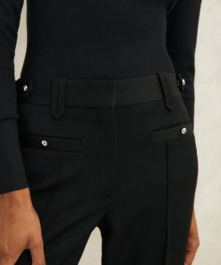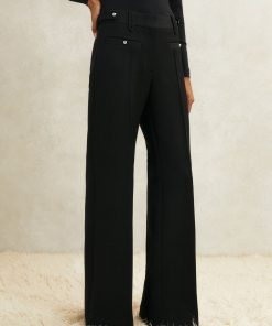 Crafted from premium wool twill, the Athena trousers balance sharp tailoring with a fluid flared leg. Front and back pintucks refine the silhouette, while polished stud hardware accents the waist tabs and welt pockets with signature finesse.Premium wool twillFlared legPintucksStud detailsWaist tabsDouble hook-and-bar with zipReiss Atelier is an elevated expression of our signature style, where timeless wardrobe staples and refined occasion pieces are crafted to be worn and loved for years to come. The model is wearing a size 8 Measurements of model: Height 5 10″ / 177.8cm