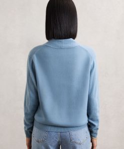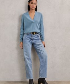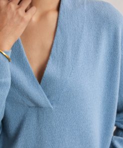 The Blue Mia jumper is crafted from cashmere for a cosy yet lightweight feel that’s soft to the touch. A wide, overlapping trim frames the V-neckline, lending subtle structure to its relaxed silhouette, while fine ribbing at the hem and cuffs adds a refined finish. 100% cashmere V-neckline Ribbed hem and cuffs