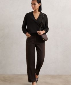 The Chocolate Brown Mia jumper is crafted from cashmere for a cosy yet lightweight feel that’s soft to the touch. A wide, overlapping trim frames the V-neckline, lending subtle structure to its relaxed silhouette, while fine ribbing at the hem and cuffs adds a refined finish. 100% cashmere V-neckline Ribbed hem and cuffs