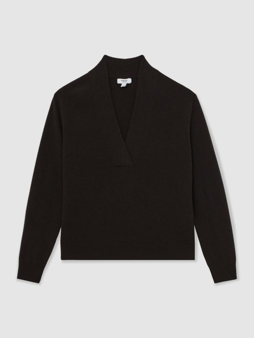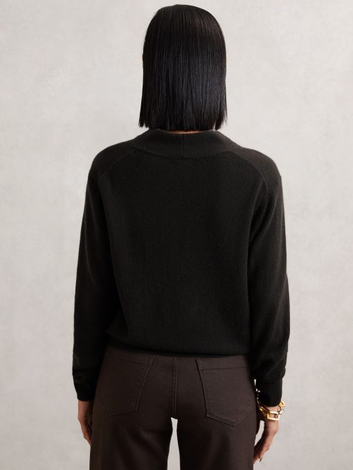 The Chocolate Brown Mia jumper is crafted from cashmere for a cosy yet lightweight feel that’s soft to the touch. A wide, overlapping trim frames the V-neckline, lending subtle structure to its relaxed silhouette, while fine ribbing at the hem and cuffs adds a refined finish. 100% cashmere V-neckline Ribbed hem and cuffs
