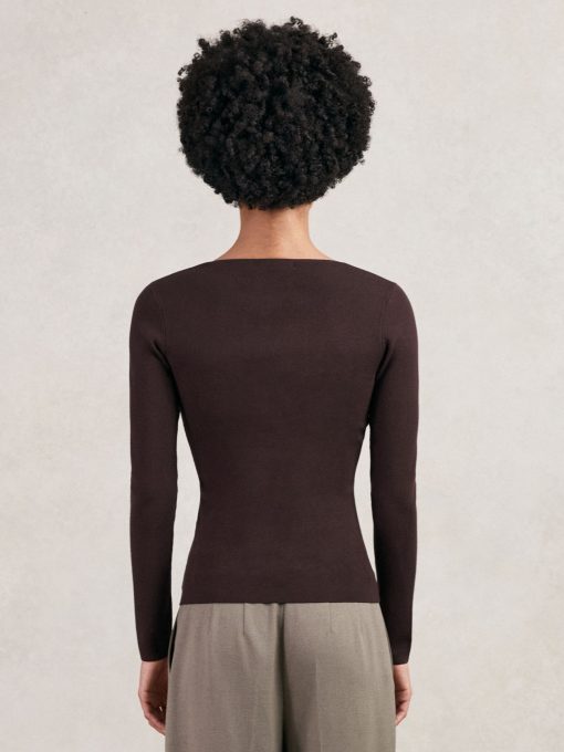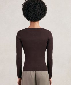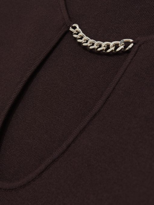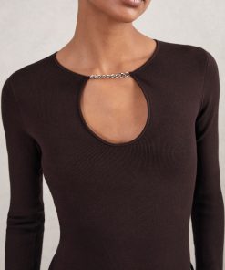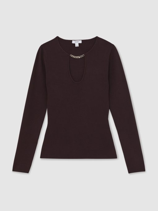 Crafted from a premium jersey knit, the Plum Tilly top showcases a front keyhole cut-out highlighted by a delicate chain detail that adds subtle edge. Long sleeves complete the clean, modern silhouette. Jersey knit Keyhole with chain hardware Long sleeves The model is wearing a size S. Measurements of model: 5ft 9″ / 175cm.