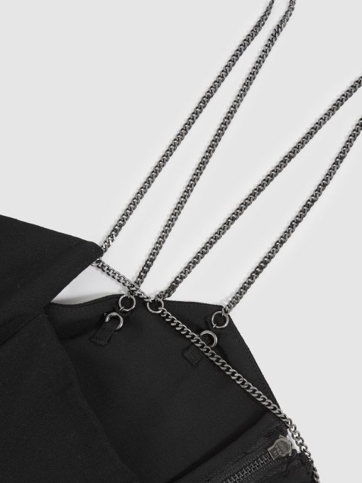 The Olara jumpsuit makes a striking statement for evening occasions. Silver-tone chains link together to form its shoulder straps and trace elegantly across the cut-out square neckline. With a fitted bodice and wide leg, it creates a sleek, elongating silhouette.Wide legCut-out square necklineChain-link strapsZip to reverse The model is wearing a size 8 Measurements of model: 5ft9 / 175cm Regular inside leg length 32.5″ / 82cm.
