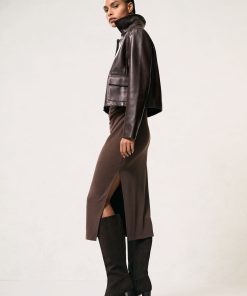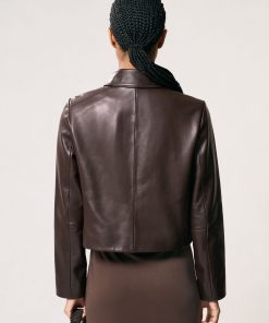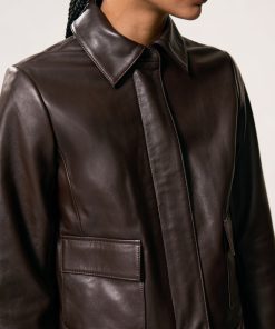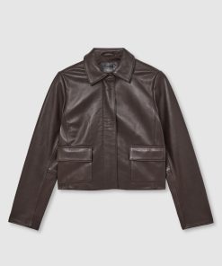 Reiss Women’s Collared Leather Jacket In Chocolate Brown | Chocolate Brown