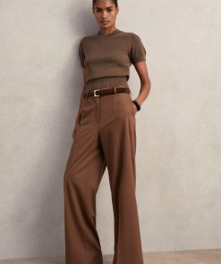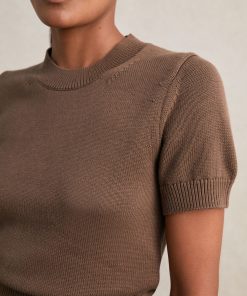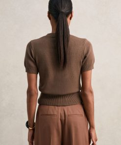 The Brown Anita top is crafted from a soft cotton-wool blend, offering a cosy yet breathable feel. Its knitted design and ribbed trims add subtle texture, whilst the classic crew neckline neatly frames the face. Cotton-wool blend Knitted Crew neckline Short sleeves Ribbed trims The model is wearing a size S. Measurements of model: Height 5ft 10″ / 177.8cm.