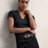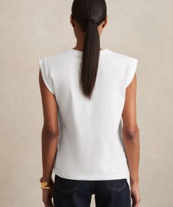 The White Tilly T-shirt is crafted from 100% cotton with soft front draping that enhances its relaxed silhouette. With a classic crew neckline and cap sleeves, it offers a fresh take on a timeless staple. 100% Cotton Draping Crew neckline Cap sleeves The model is wearing a size S. Measurements of model: Height 5ft 10″ / 177.8cm.
