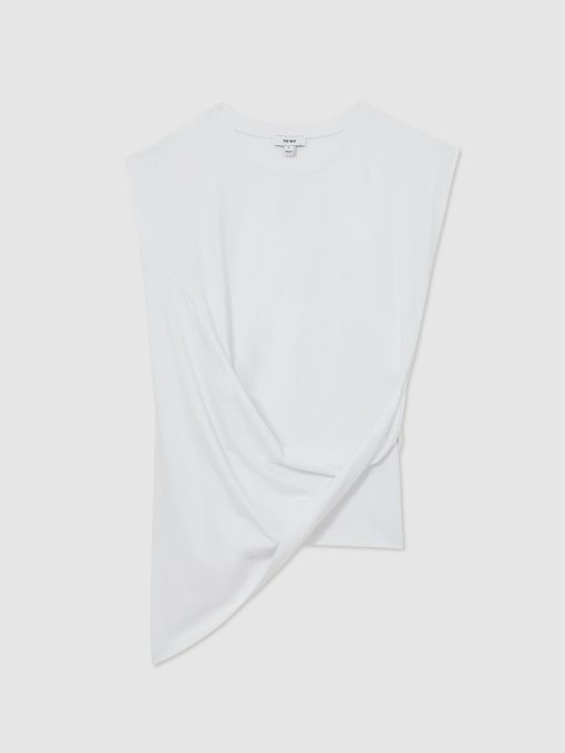 The White Tilly T-shirt is crafted from 100% cotton with soft front draping that enhances its relaxed silhouette. With a classic crew neckline and cap sleeves, it offers a fresh take on a timeless staple. 100% Cotton Draping Crew neckline Cap sleeves The model is wearing a size S. Measurements of model: Height 5ft 10″ / 177.8cm.