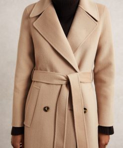 The Rene coat is tailored from a double-faced wool blend with blind seams and no lining, offering the same smooth, premium feel inside and out. It's double-breasted silhouette is secured with four buttons and a self-tie belt, balancing structure with fluidity. Wool blend. Blindseam construction. Double-breasted. Notch lapels. Self-tie belt. No lining. Regular centre back neck to hem 47.5″ / 121cm.