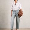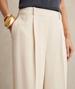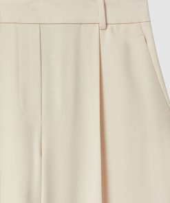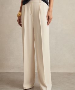 The lightweight twill of the cream Eden trousers allows the wide-leg silhouette to drape effortlessly to the floor. An elasticated waistband adds a relaxed touch to the tailored pair. Lightweight twill Wide leg Elasticated back waistband Front pleats Side slip pockets Welt pocket to reverse The model is wearing a size 8. Measurements of model: Height 5ft 10″ / 177.8cm. Regular inside leg length 30.5″ / 78cm.