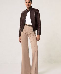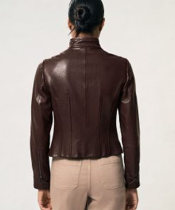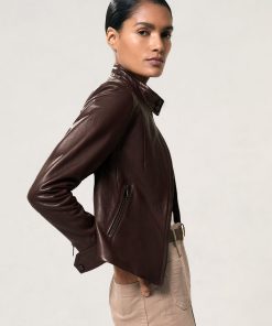 The Astra biker jacket is crafted from supple leather and cut to a fitted silhouette, offering a sleek take on classic moto style. A standing collar, dual front zip and press-stud details lend an authentic, elevated finish. 100% leather Standing collar with press-studs Zip cuffs with press-studs Side zip pockets Dual front zip The model is wearing a size 8. Measurements of model: Height 5ft 10″ / 177.8cm. Regular centre back neck to hem 22″ / 56cm.