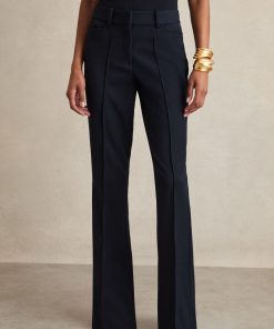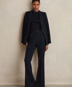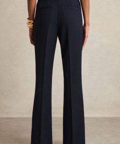 The navy Gabi suit trousers are designed with flared hems, crafted from a smooth-feel fabrication for a natural fluidity. Matching blazer Mid-rise Side pockets Pressed creases Flared The model is wearing a size 8. Measurements of model: 5ft 10″ / 177.8cm.