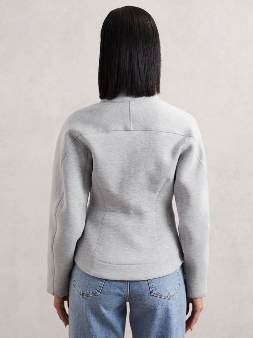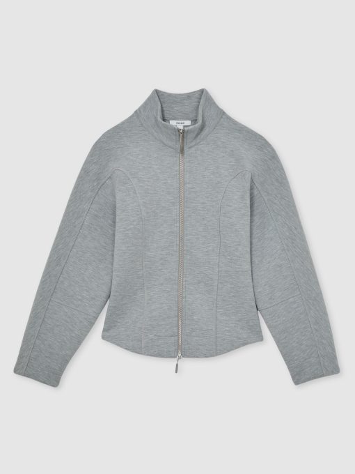 The Taite sweatshirt is crafted from structured, heavyweight jersey with stretch, designed to hold its sculpted silhouette. Cocooned sleeves and a high funnel neck bring a modern feel, while exposed overlocked seams and a dual zip closure add a technical finish. Heavyweight jersey with stretch Funnel neck Cocoon sleeves Dual front zip