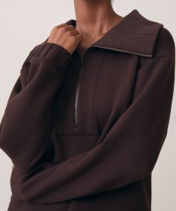 The Laney sweatshirt is imbued with athletic characteristics, including a half-zip fastening and drawstring hem. Soft interlock jersey maintains its shape and adds a luxe edge to the top. Heavyweight interlock jersey Foldover collar with ribbing Drop shoulders Drawstring hem Half zip The model is wearing a size S Measurements of model: Height 5ft 10″ / 178cm.
