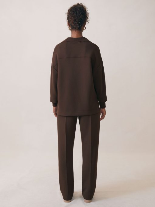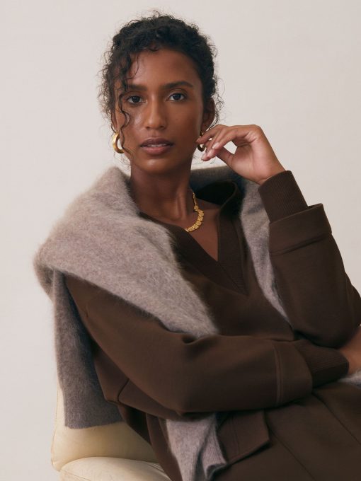 The Bernie sweatshirt is engineered for comfort in our premium cloud interlock, a silky-soft modal-blend jersey with a beautiful drape. Its relaxed fit and dropped shoulders enhance the laid-back feel, while storm cuffs add a cosy, layered look. Modal-blend interlock jersey Open-collar neckline Layered storm cuffs Dropped shoulder seams Relaxed fit The model is wearing a size S Measurements of model: Height 5 10' / 177.8cm
