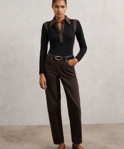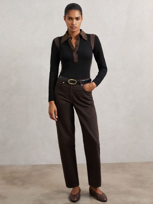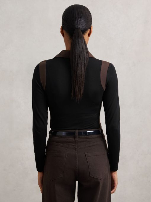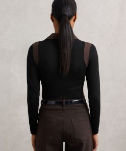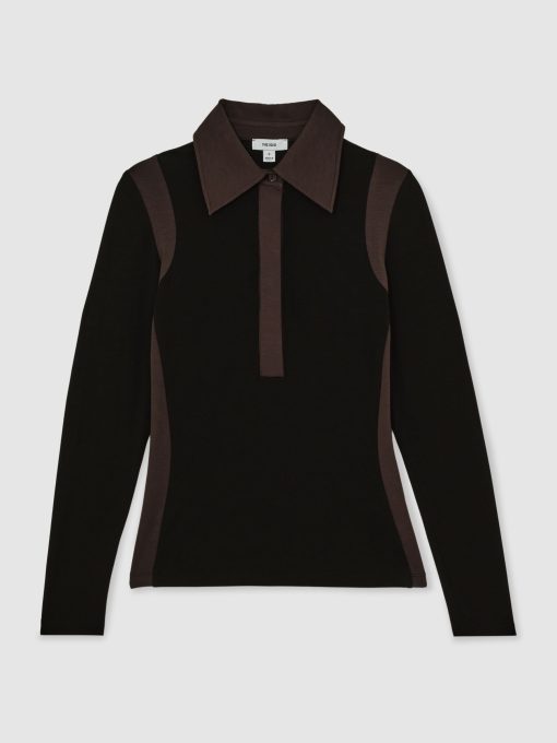 The Denise shirt is defined by contrasting panels that create a modern colour-blocked look. It’s crafted from soft stretch jersey for a body-skimming fit, with a collared neckline and half-button placket for versatile styling. Lyocell jersey with stretch, Colour-blocking, Classic collar, Concealed half-button placket.